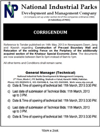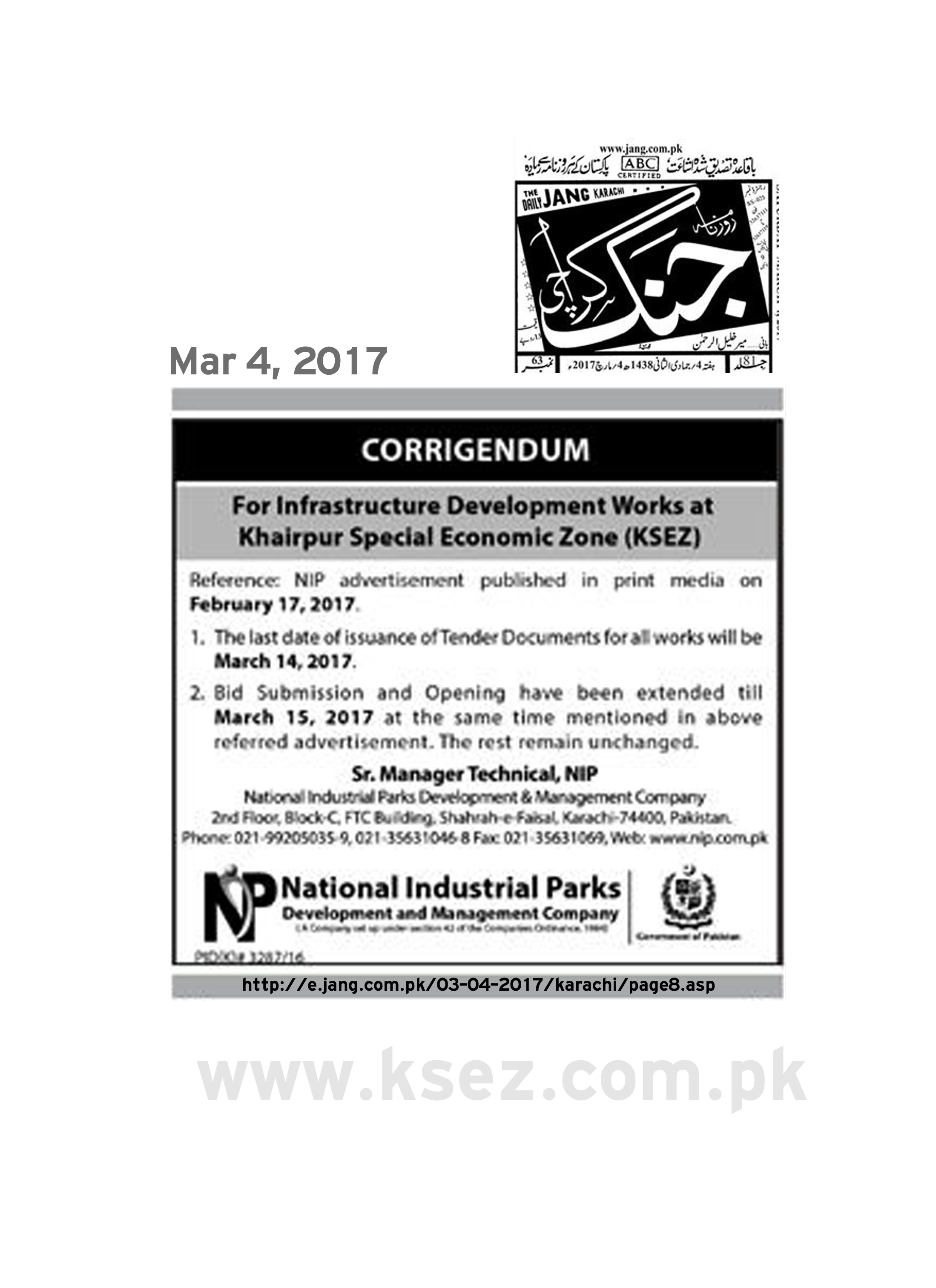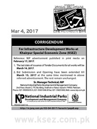 " Corrigendum("Infrastructure Development Works @ KSEZ")