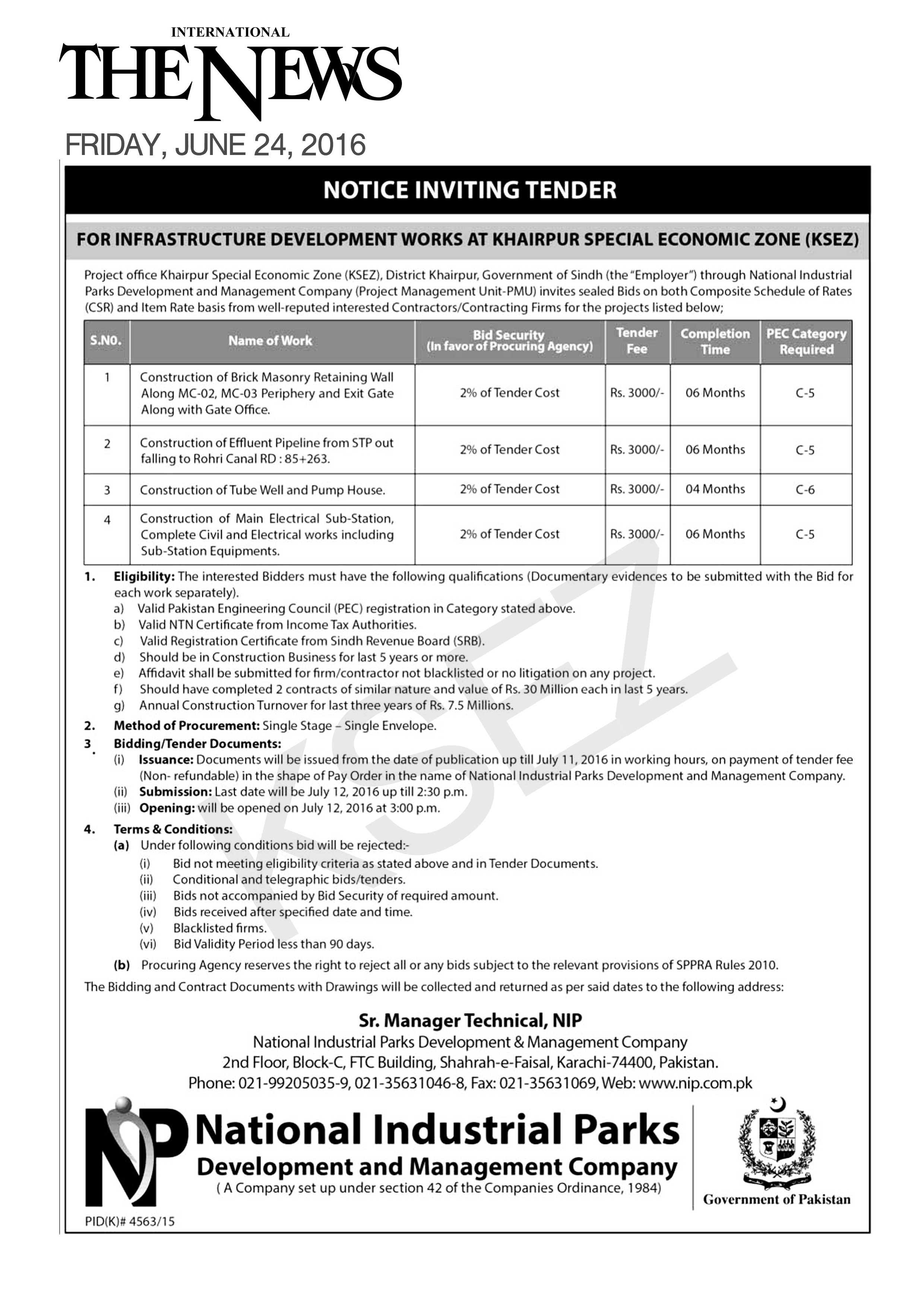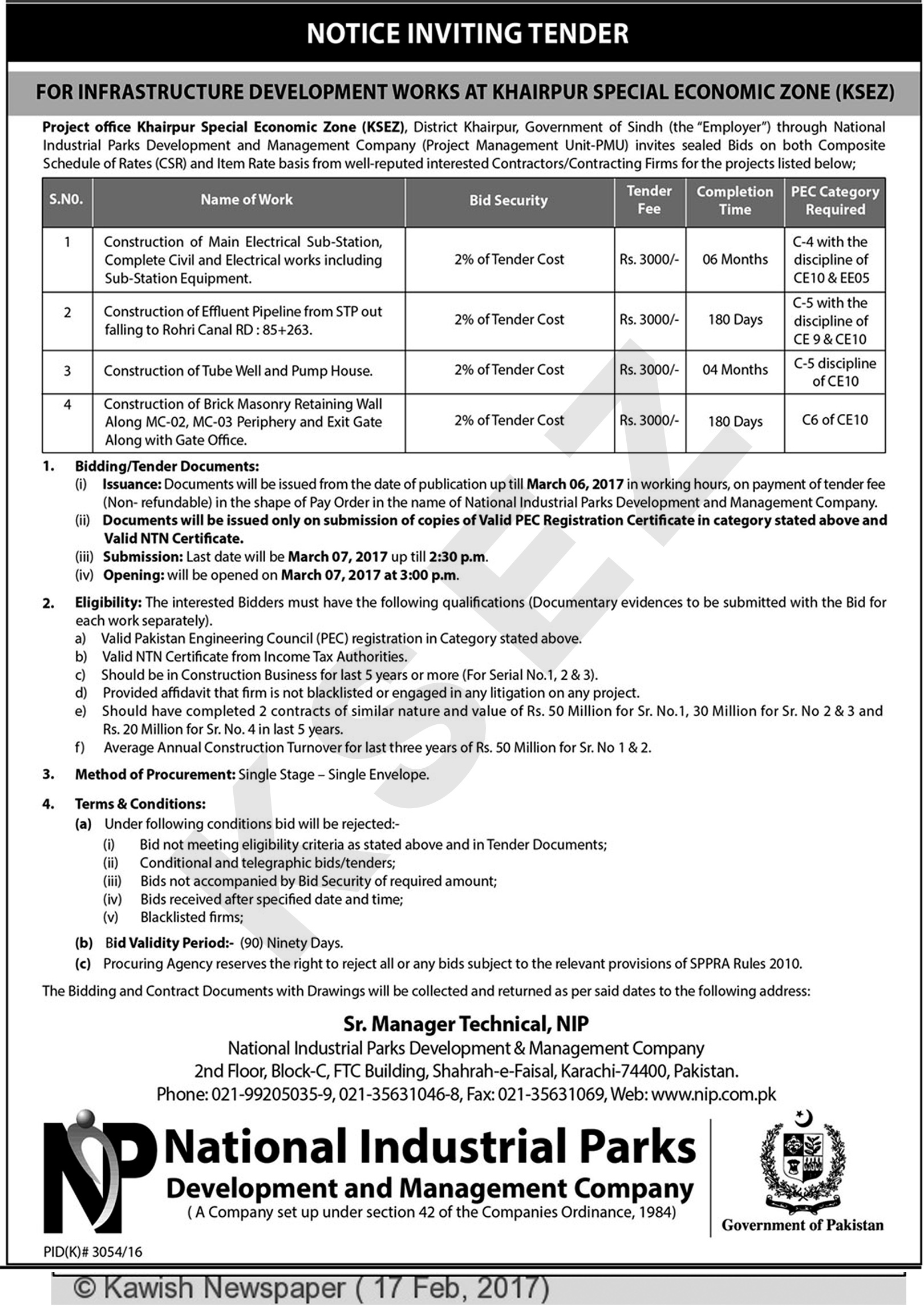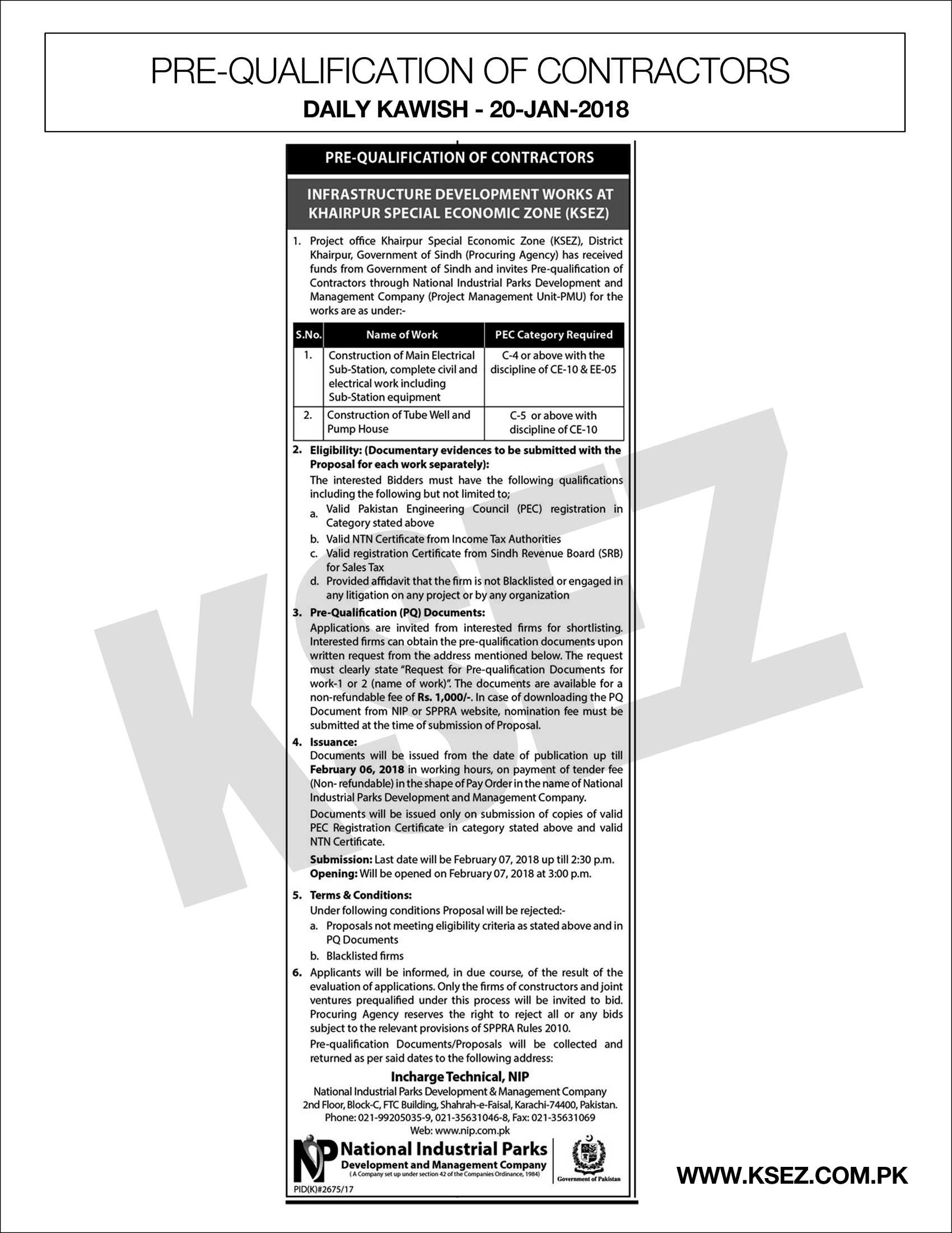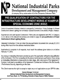 " "Pre-Qualification of Contractors" Infrastructure Development Work @ KSEZ"