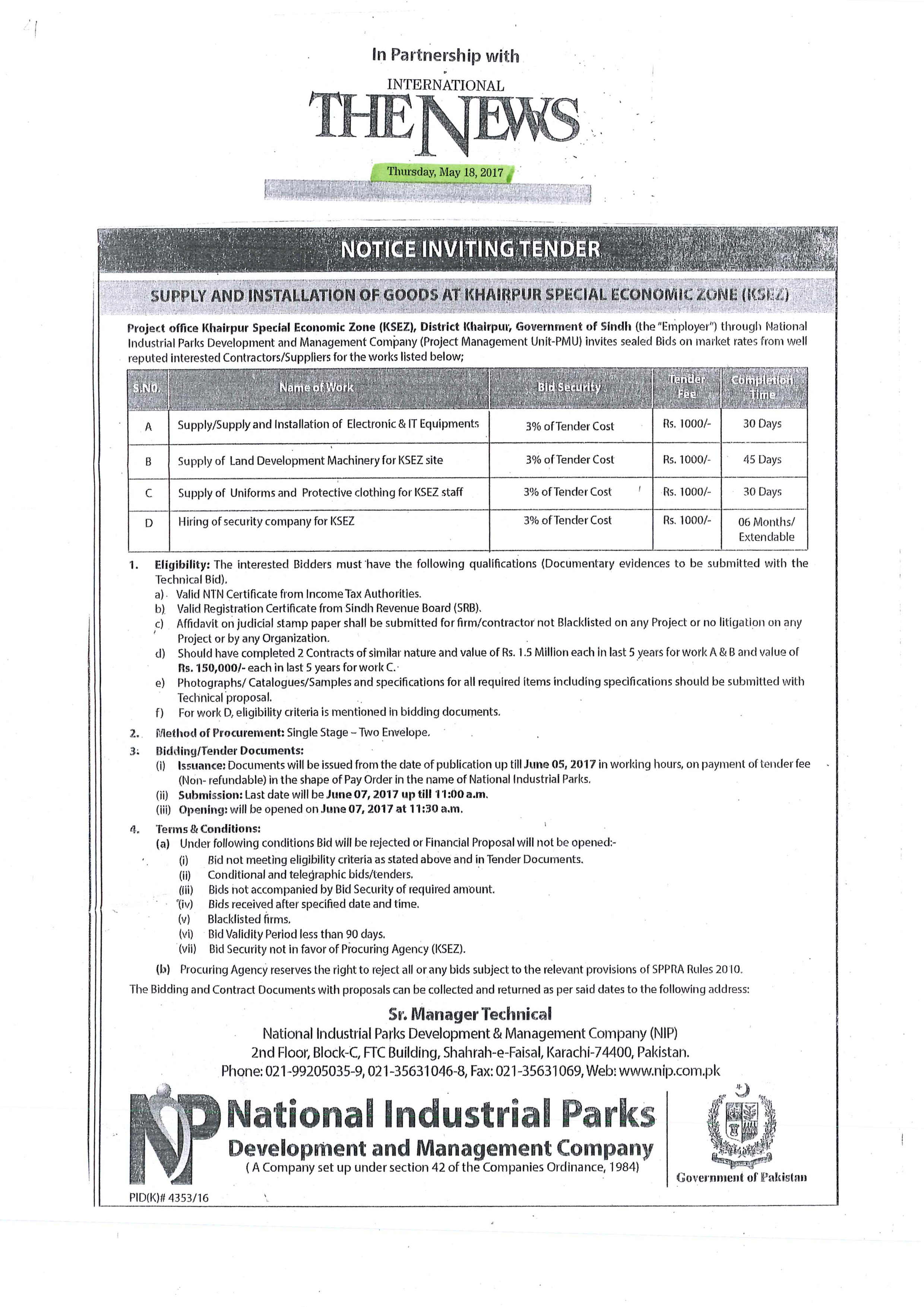"Corrigendum("Supply and installation of Goods/Security at KSEZ")