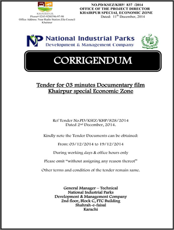 Corrigendum (Tender of Documentary Film-KSEZ).